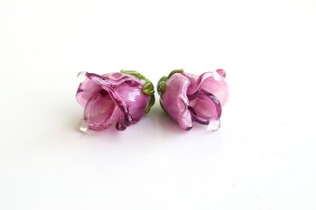 1(one) white / magenta rose flower bead