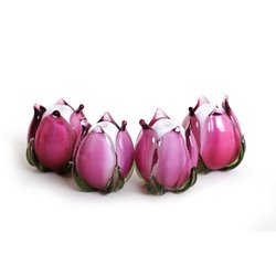1(one) Pink miniature rose flower bead